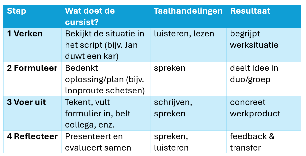 • Verhoogt betrokkenheid: cursisten zien meteen nut van taal.